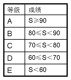 将百分制成绩转换为等级分制成绩时,转换规则如下表所示:
