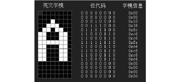 以8×16的ASCII字符为例,16个字节可以表示一个点阵字符的字型信息。