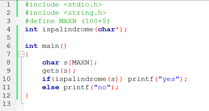 编写自定义函数int ispalindrome(char* s); 检测字符串s是否为回文(所谓回文字符串,就是一个字符串,从左到右读和从右到左读是完全一样的)。