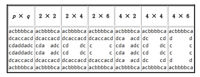 There's a beautiful garden whose size is n × m in Edward's house. The garden can be partitioned into n × m equal-sized square chunks. There are some kinds of flowers planted in each square chunk which can be represented by using lowercase letters.