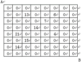 某人从图中的左上角的A出发,可以向下行走,也可以向右行走,直到达右下角的B点。在走过的路上,他可以取走方格中的数(取走后的方格中将变为数字0)。